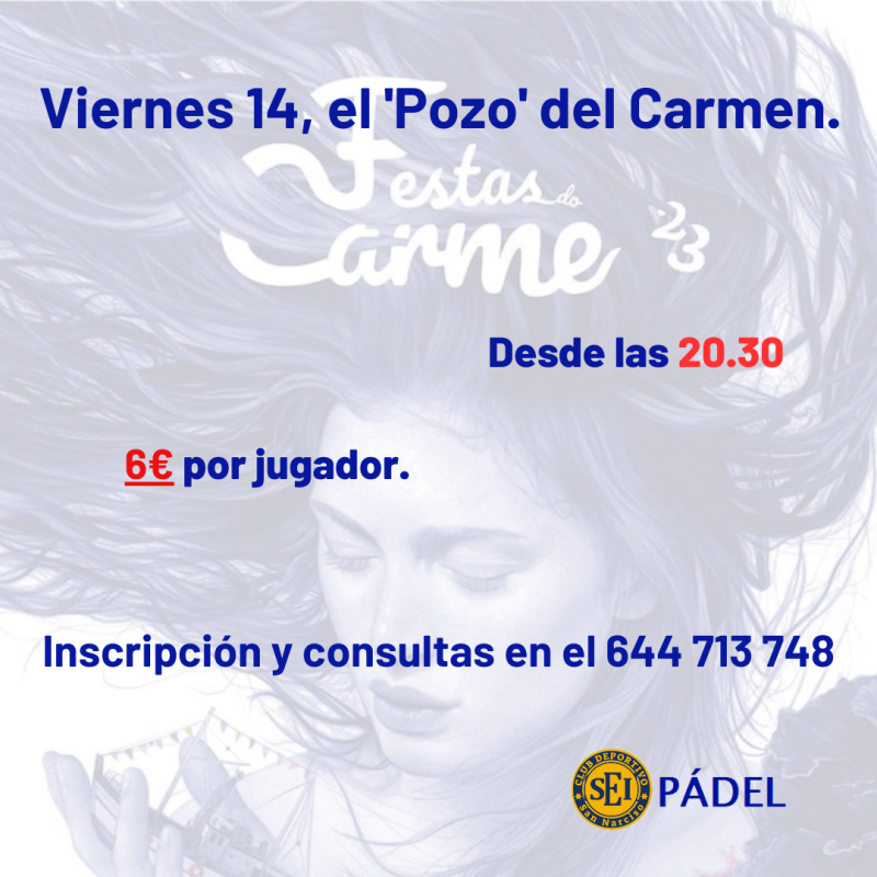 « Anterior Escuela de verano Pádel SEI San Narciso. Viernes 21, 'Pozo'. Siguiente »